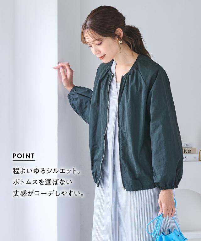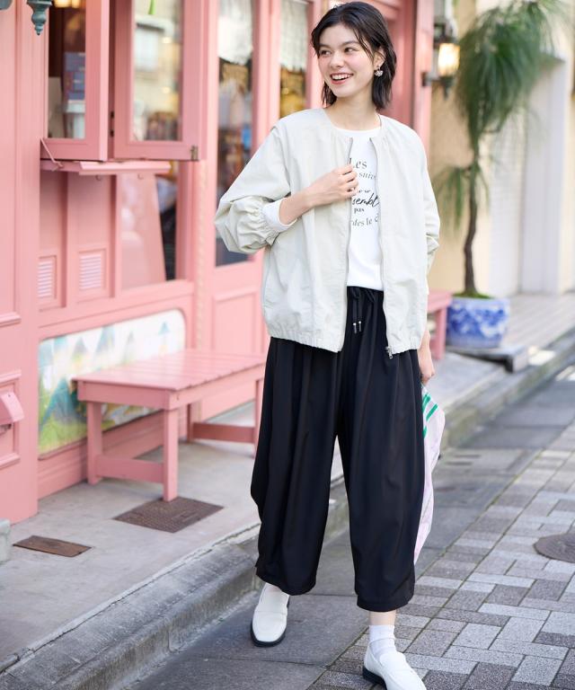春の訪れを感じさせる、軽やかな着心地のノーカラージャケットが登場! ■デザイン 元をすっきりと見せるノーカラーデザインが特徴です。 全体的にゆったりとしたシルエットで、リラックス感のある着心地を提供します。袖口と裾はゴムで絞られており、ふんわりとした丸みのあるシルエットを演出。 フロントはジップアップ仕様で、着脱が簡単です。ラグランスリーブで肩周りも動かしやすく、カジュアルな印象を与えます。 ■素材 うす手でハリのある生地を使用し、軽量で着心地よく、 春先の肌寒い日や梅雨時期にも活躍しそうな素材感です。 ■おすすめのスタイリング インナーにはロゴTシャツやボーダーTシャツを合わせてカジュアルに。 ボトムスは、画像のようにピンク系のワイドパンツを合わせると、フェミニンでトレンド感のあるスタイルになります。 デニムパンツやチノパンと合わせて、よりカジュアルダウンするのもおすすめです。足元はスニーカーで軽快に、 パンプスで少しきれいめにまとめるのも良いでしょう。 キャップなどの小物を取り入れると、さらにこなれた印象になります。