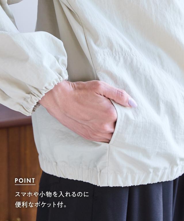 ナイロン100% 前ファスナー 袖口・裾ゴム入 ポケット両脇 透け感:透けにくい 伸縮性:なし 生地の厚み:普通 光沢感:なし 裏地:なし ポケット:あり 季節:春・秋 シルエット:ゆったり 原産国:中国製 備考:洗濯機OK ネット使用