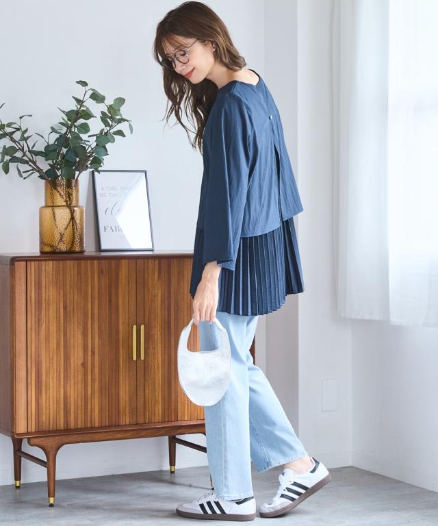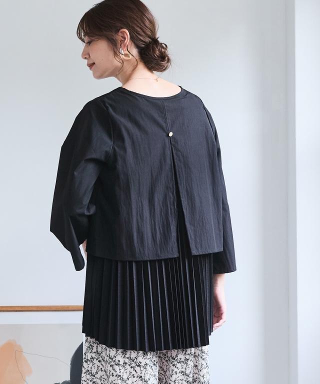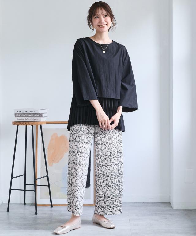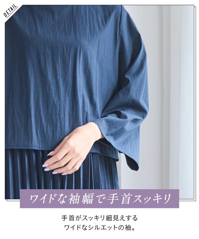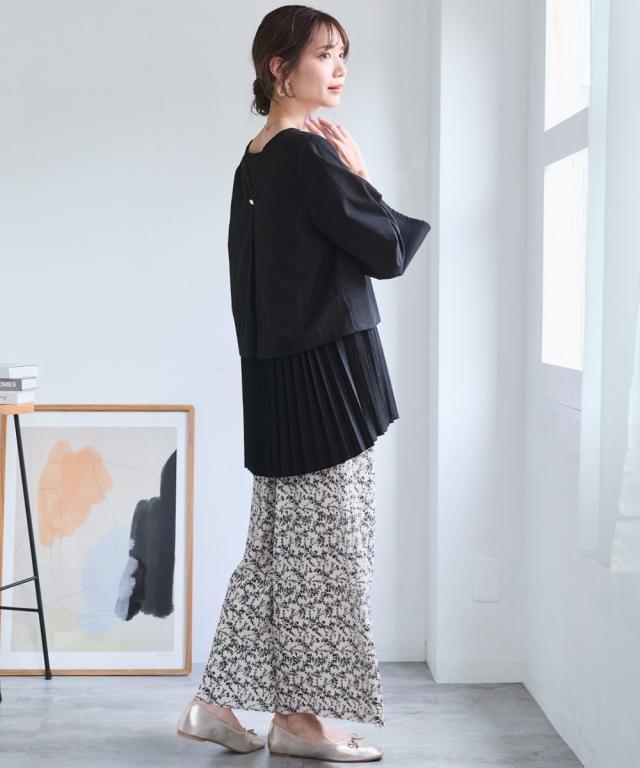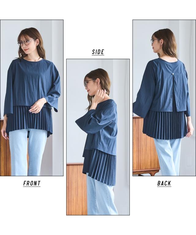 プリーツが描く華やぎチュニック ■デザイン 裾から覗くプリーツが印象的な、主役級ブラウス。揺れるプリーツが気になるお腹周りを優しくカバーし、体型カバー効果も期待できます。ゆったりとしたシルエットで、リラックス感のある着心地ながらも、上品な印象を与えます。 ■素材 さらりとした肌触りの良い生地を使用しており、これからの季節にぴったりの軽やかな着心地です。 ■おすすめのスタイリング シンプルなパンツやスカートと合わせるだけで、華やかなコーディネートが完成します。晴れの日にはキレイ目ボトム&パンプスにパール等少し長めのアクセを合わせて。オフィススタイルからカジュアルなお出かけまで、幅広いシーンで活躍する一枚です。