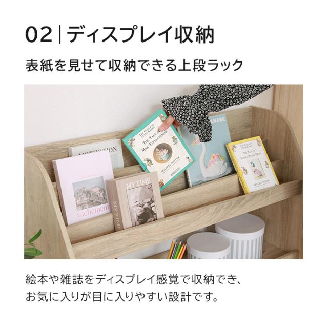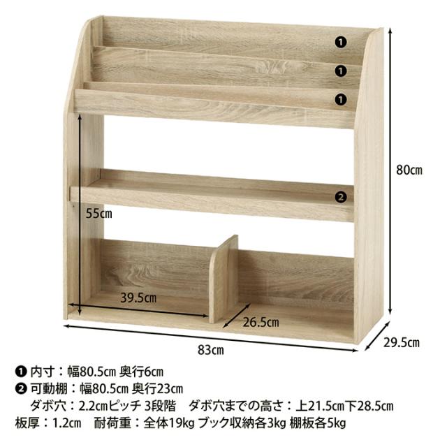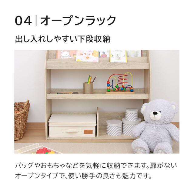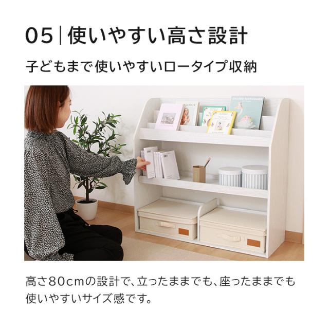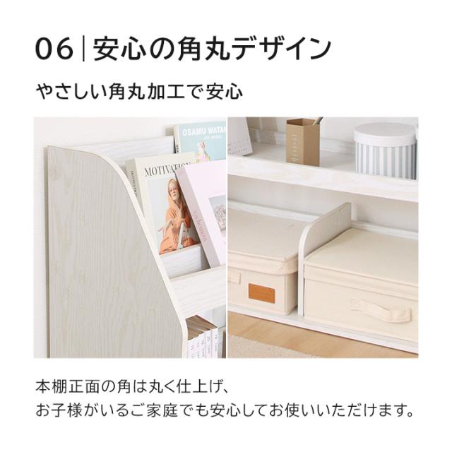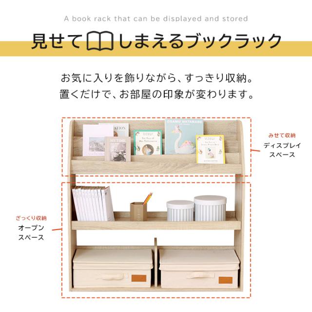 ブックラック ラック 幅83cm オーク オークホワイト 絵本棚 子供部屋 ディスプレイ収納 ロータイプ ナチュラル 木目 リビング 稼働棚 オープンラック 角丸 安心