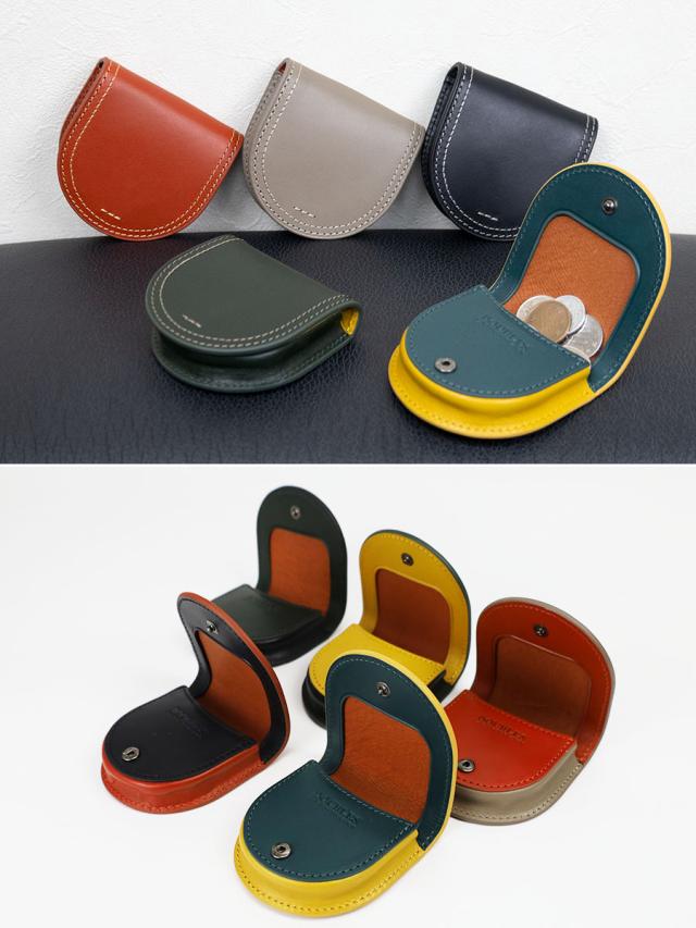 高い技術が求められる独特な立体構造の馬の蹄の形に似ていることから馬蹄型と呼ばれるコインケースです。手の平に馴染む形と、蓋がトレーのようになりコインを広げながら探せることから人気のデザインです。