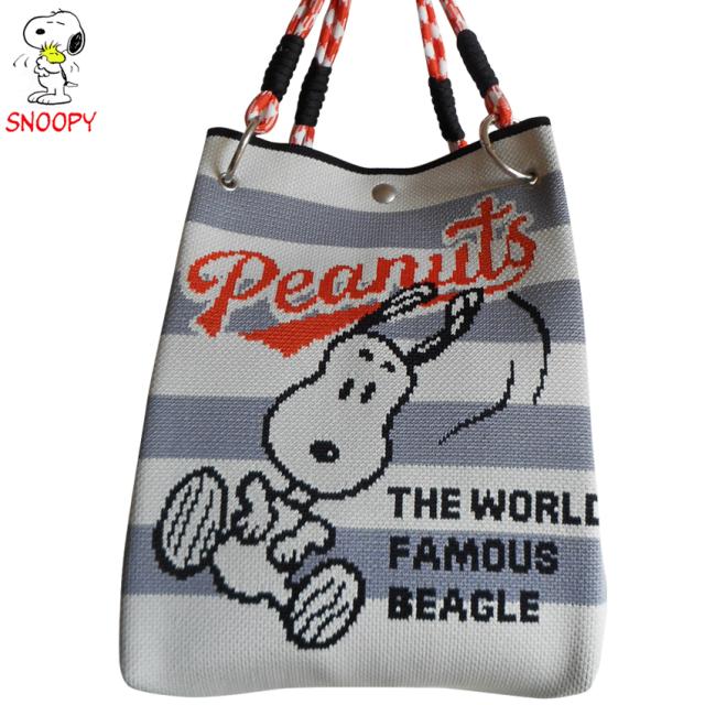 送料無料 スヌーピー バッグ ニットバッグ 手提げ かばん おしゃれ 軽量 かわいい ポシェット ピーナッツ SNOOPY PEANUTS グレー ボーダー オレンジ ストライプ 脱力 ジャガードニット プレゼント ギフト 誕生日