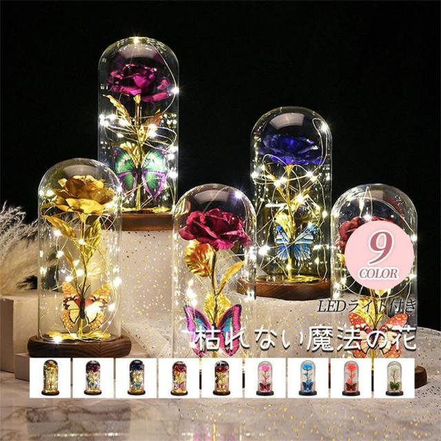 プリザーブドフラワー 金メッキローズ 蝶付き 造花 バラ 花束 枯れない花 LEDライト付き ホワイトデー 母の日 入学式 お見舞い 記念日 ギフト プレゼント 敬老の日 プレゼント