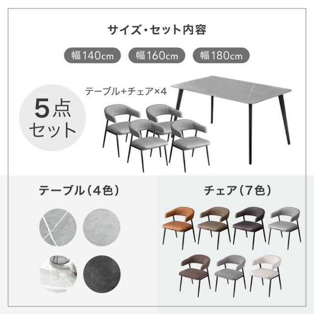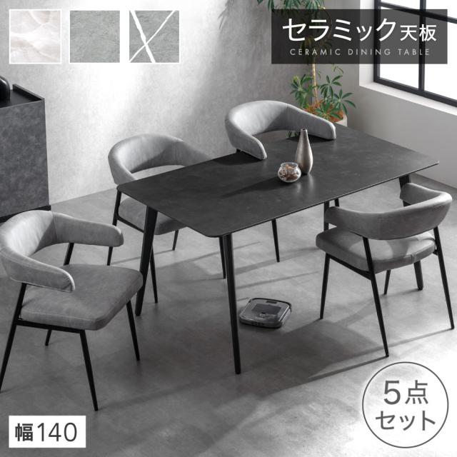 【正午〜P5%還元】 お掃除ロボット対応 セラミック ダイニングテーブルセット 140cm 5点 4人掛け ダイニングテーブル セラミックテーブル 肘付き ダイニングチェア ダイニングセット テーブル チェア 4人 大理石 調 北欧 【超大型】【後払/時間指定NG】