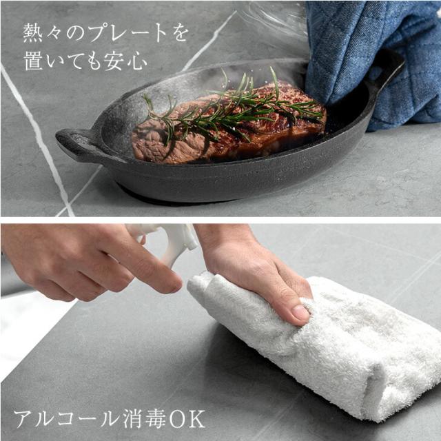 ※熱に強いセラミックは高温で焼き上げるため熱に強く、熱い鍋などを直接置いても変色や変形が起こりにくい高い耐熱性がありますが、天板の表面が熱くなるので鍋敷きなどの使用をおすすめします。