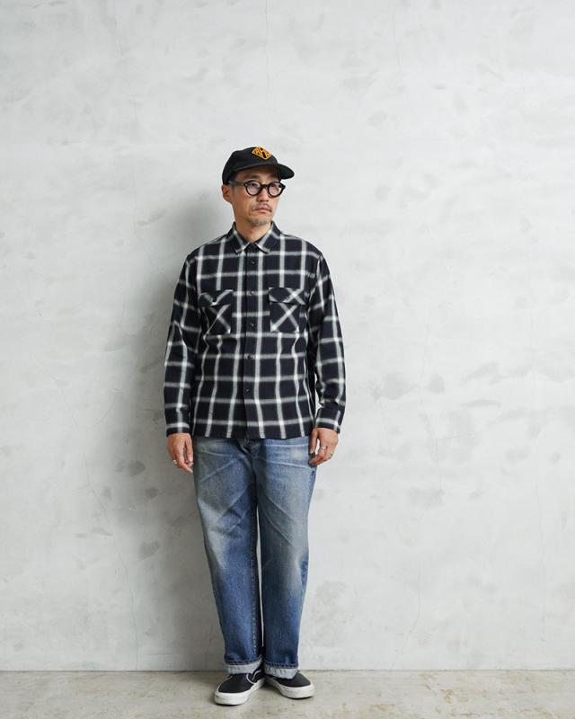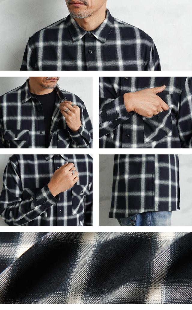 BIG MIKEから、サラッと羽織れる、ライトフランネル生地を使用した、L/S シャツの登場です。コットン100%を使用した、サラッとした生地感は肌心地も良く、ふわりとした起毛感で温かみもある仕上がり。ワークブランドらしい丈夫なつくりなので耐久性にも非常に優れています。2本針巻き縫いやフラップ付き胸ポケットなどヴィンテージライクなディテールが魅力的に仕上がっており、また猫目ボタンを採用しているので、糸がくぼみのところにあり擦れるのを防いでくれます。豊富なカラーバリエーションで、デイリーの定番として色違いで揃えたくなる万能アイテム。