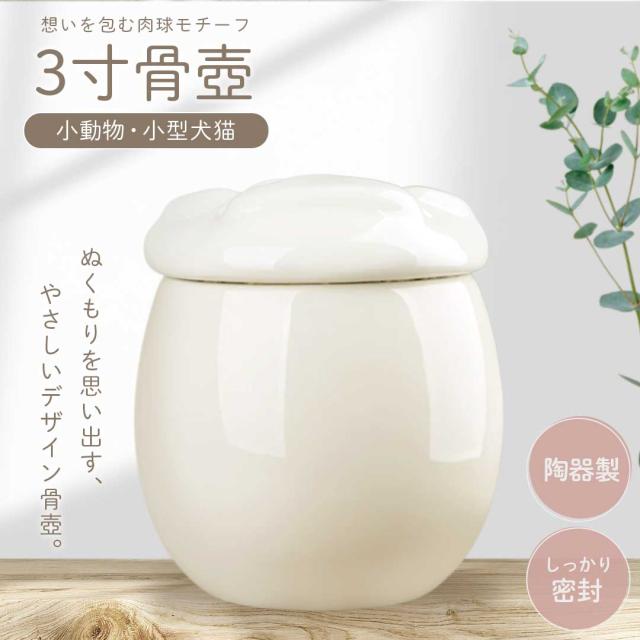 ペット骨壺 3寸 骨壺 肉球 デザイン 陶器 白 ホワイトグレージュ メモリアル 遺骨入れ 骨壺カバー 手元供養 ペット供養 ペット仏具 遺骨 遺灰 分骨 形見 供養グッズ メモリアルグッズ 愛犬 愛猫 犬 猫 うさぎ ハムスター 小鳥 インコ 文鳥 フェレット