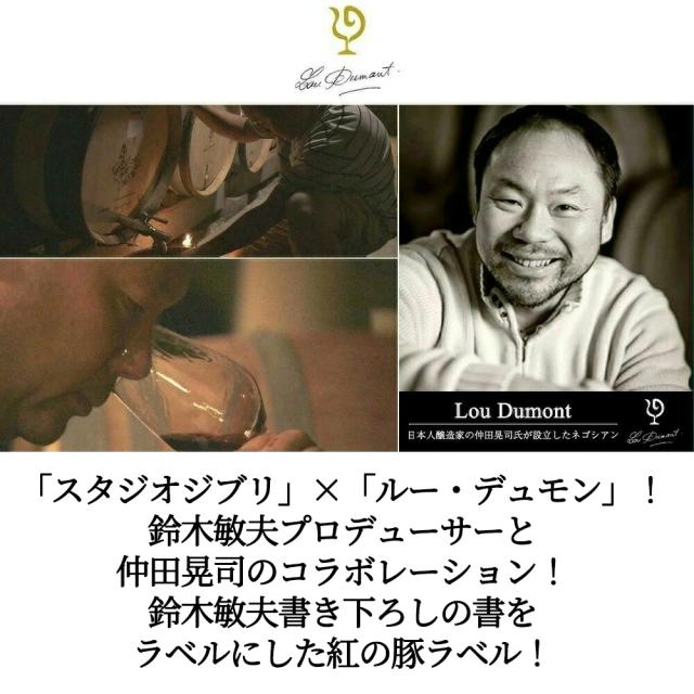 「スタジオジブリ」×「ルー・デュモン」!鈴木敏夫プロデューサーと仲田晃司のコラボレーション!鈴木敏夫書き下ろしの書をラベルにした紅の豚ラベル!