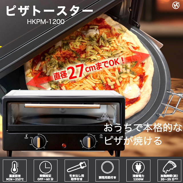 ■庫内推奨サイズ:(ピザ)最大直径27cm (トースト)2枚