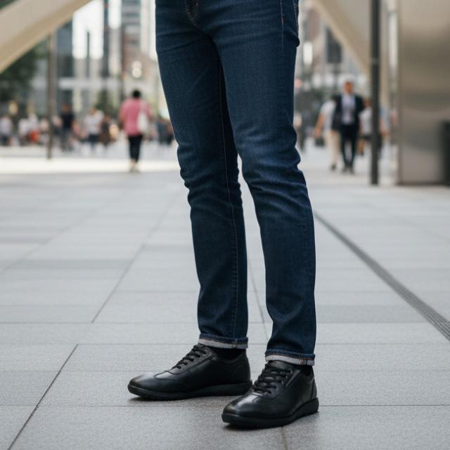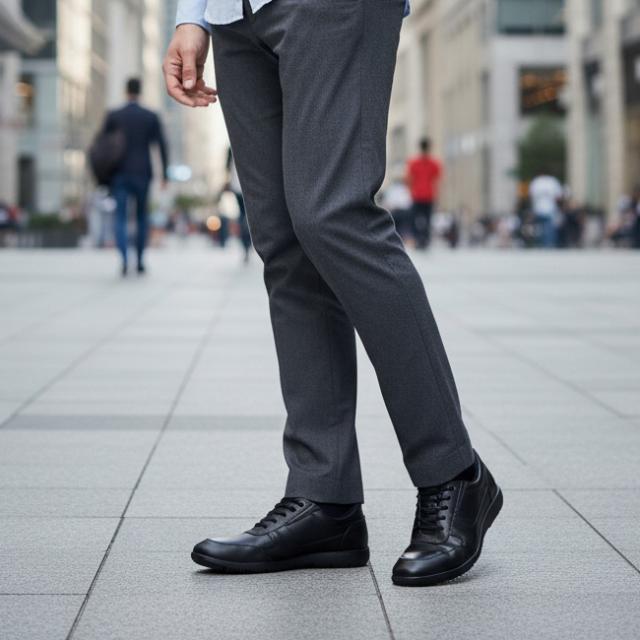 手を使わずにスルッと脱ぎ履きできるハンズフリービジネスシューズ