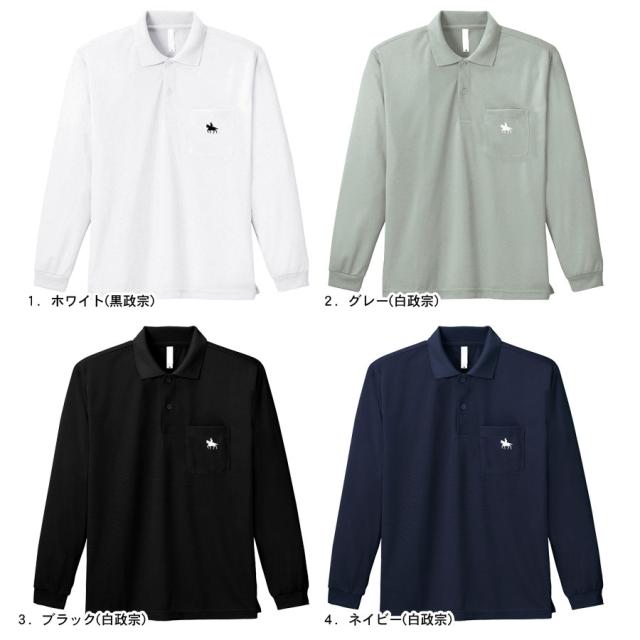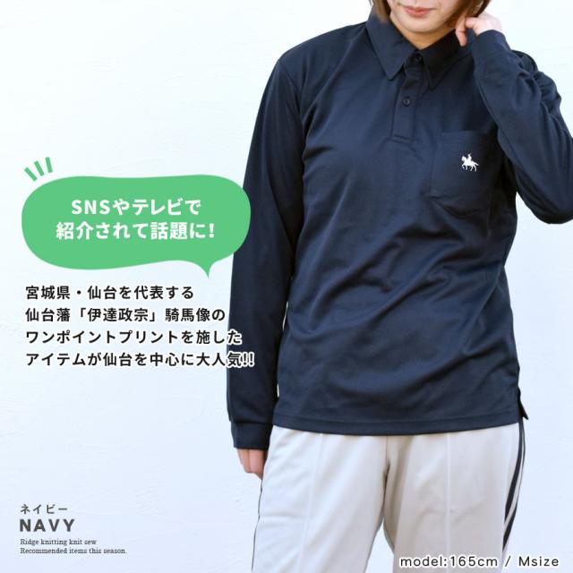 ポロシャツ Tシャツ 長袖 伊達政宗 レディース メンズ トップス 胸ポケット ドライ UVカット 吸水 速乾 スリット入り ワンポイント 政宗 グッズ 4.4オンス 仙台藩 騎馬像 馬 午年 ユニセックス メッシュ さらさら 快適 ゆったり (toms00335)