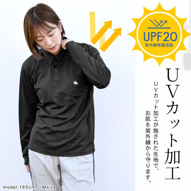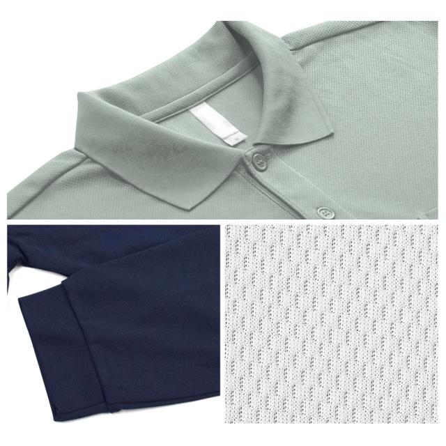 UVカット加工・吸水速乾長袖ドライポロシャツ。
