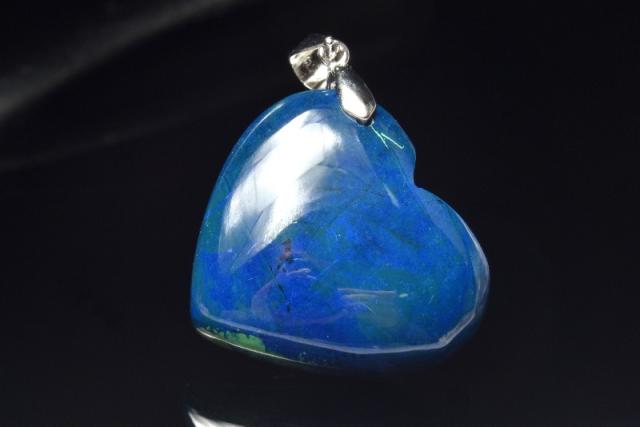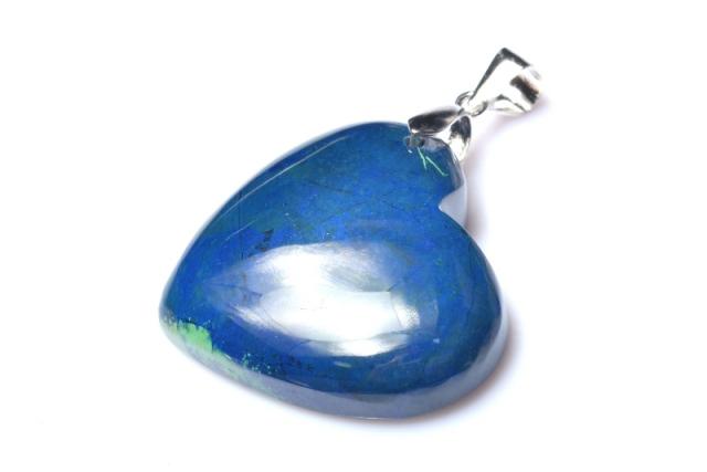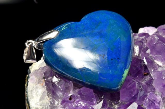 【1点物】シルバー925◇高発色 アズライト(藍銅鉱) 25x25mm ハート ペンダントトップ _PC8991