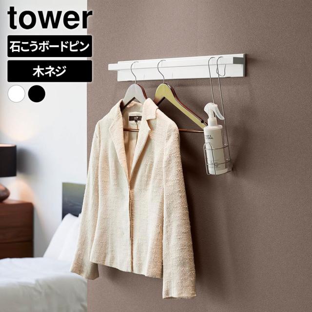 山崎実業 tower タワー 壁付けハンガーバー ホワイト/ブラック 10681 10682 | 壁掛け 収納 壁面収納 シェルフ ラック ハンガー掛け ハンガーバー 洋服掛け コート掛け ウォールハンガー