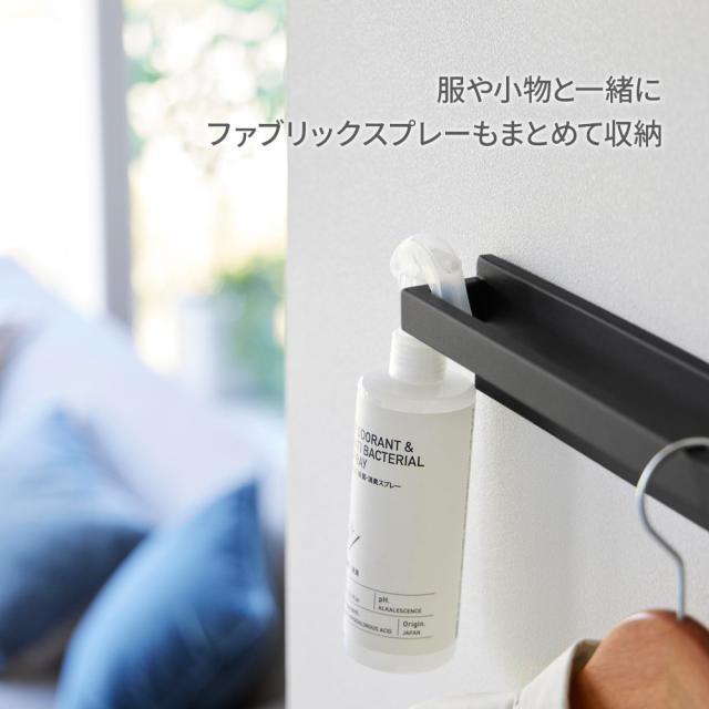ちょい掛け収納にもぴったりで、服や小物と一緒にファブリックスプレーもまとめて収納できて便利。