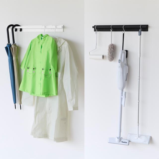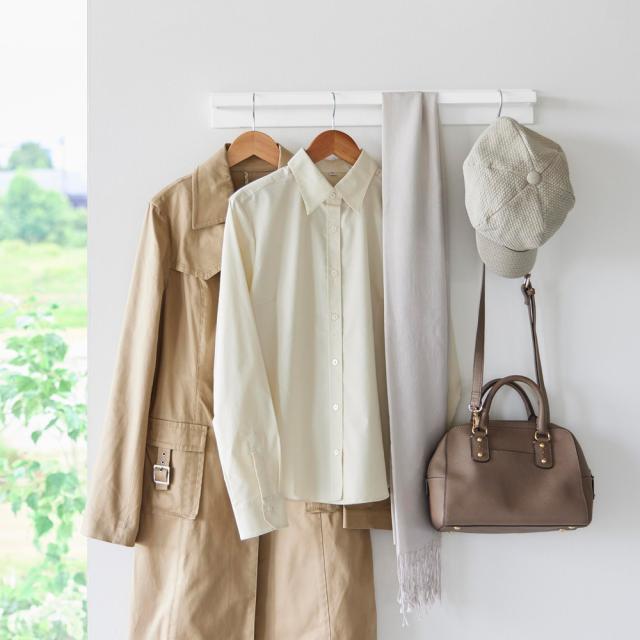 お手持ちのハンガーやS字フックを使って、服やバッグなどをすっきり収納。