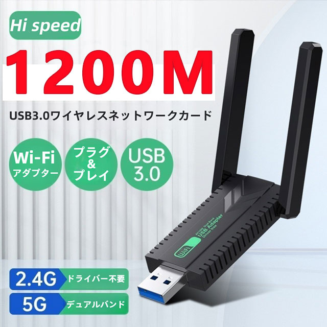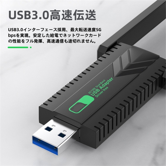 WiFi 無線LAN 1200Mbps USB3.0 アダプター ネットワークカード ドライバーフリー デュアルバンド 小型 ワイヤレス Windows7/8/8.1/10/11/XP対応 2.4 5.8GHz コンパクト USBアダプター