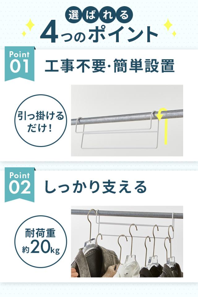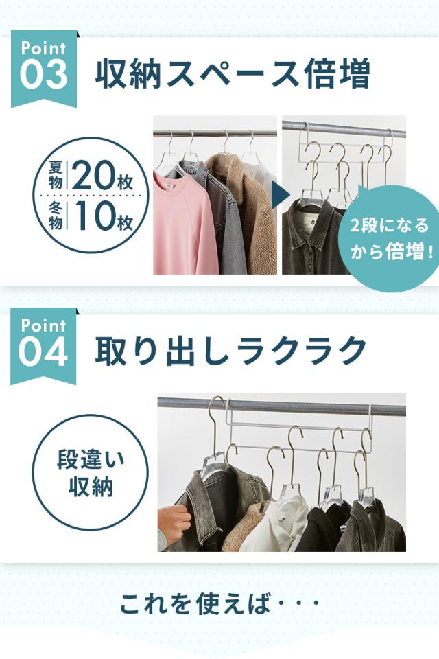 | 商品詳細 | ハンガー 収納 クローゼット 省スペース 衣類収納 収納アップ ハンガー拡張 2段 ハンガーラック 整理 洋服収納 賃貸 |