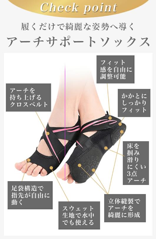 【2足1,100円OFF】コアウォークサポーター アジャスト 足裏アーチ 足裏 サポーター フットサポーター 土踏まず アーチサポーター ヨガソックス 5本指 滑り止め 指なし ピラティス 靴下 インソール 外反母趾 姿勢矯正 偏平足 扁平足 レディース ダイエット