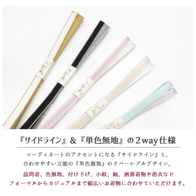 絹100%、リバーシブル仕様の『正絹三分紐』でございます。