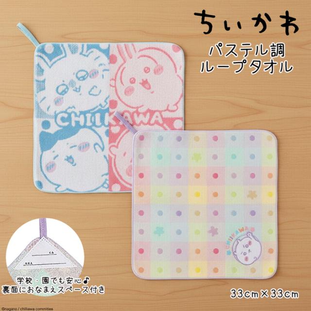 ちいかわ パステル調 ループタオル 33cm ループ付き ネームタグ付き 綿100% ハチワレ うさぎ モモンガ ハンカチ ハンドタオル タオルハンカチ キッズ 保育園 幼稚園 小学校 汗拭き 手拭き