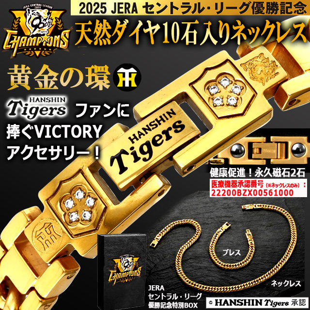 阪神タイガース JERAセントラル・リーグ優勝記念天然ダイヤ10石入りネックレス Tigers プロ野球 トラキチ 猛虎 医療機器承認 永久磁石 首