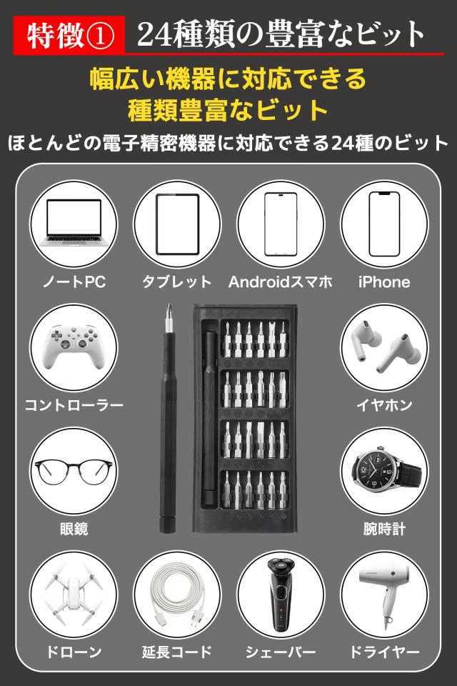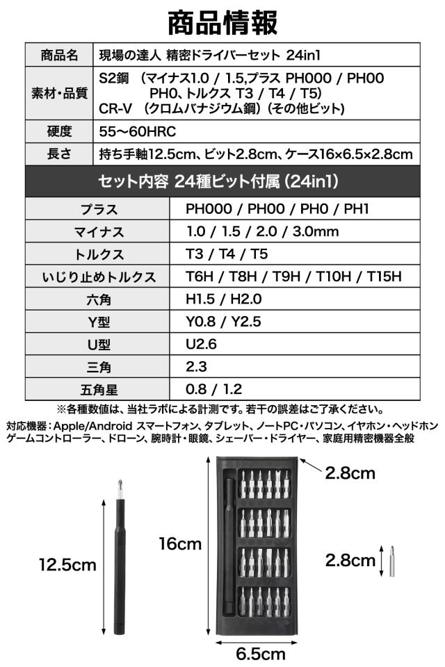 精密ドライバーセット 24in1 現場の達人 特殊ネジ 対応 iPhone 14 15 修理 スマホ 分解 工具 パソコン 時計 眼鏡 メンテナンス いじり止め トルクス