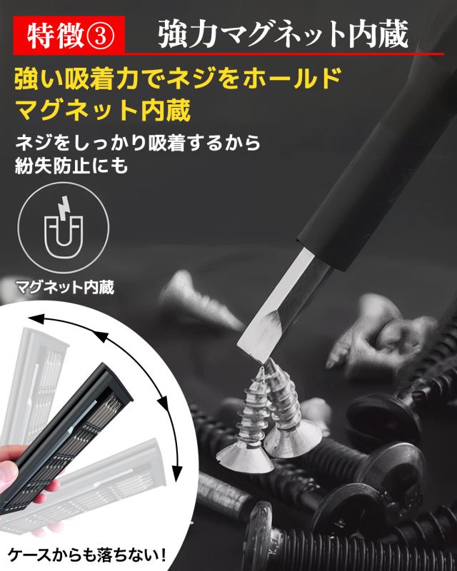 作業中の紛失を防ぎケースを逆さにしてもビットが落ちない