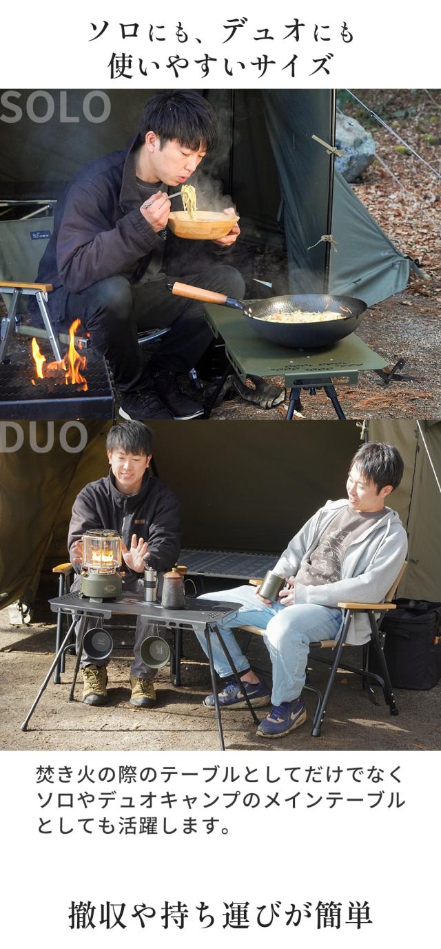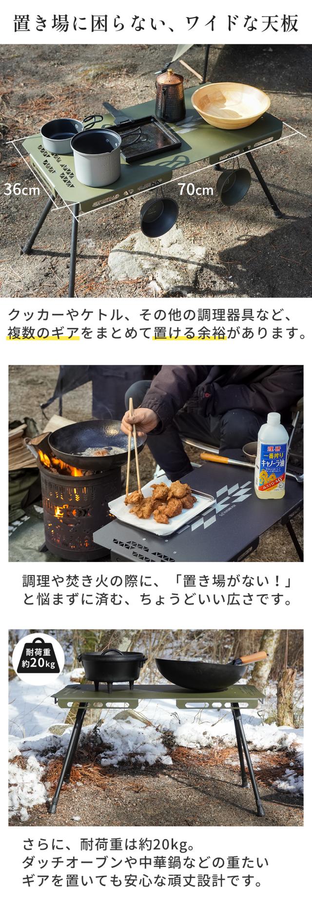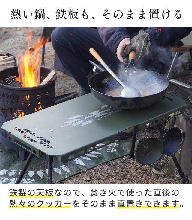 熱いダッチオーブンやスキレットなどの調理器具もそのまま置け、焚き火周りの作業がスムーズに。