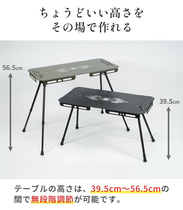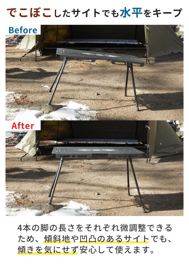 脚の長さが変えられ、あなたのキャンプシーンに合った高さでお使いいただけます。