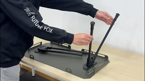 頑丈なスチール製で重たいギアや大きいギアもラクラク置けます。