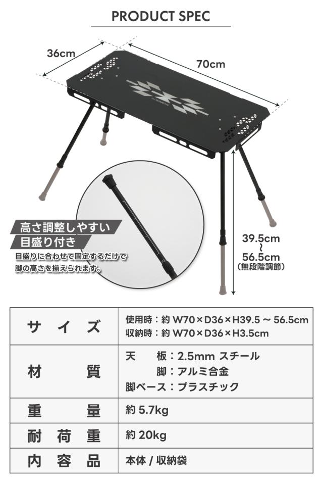 FUTURE FOX 焚き火 サイドテーブル 【熱に強い/高さ調節可】 キャンプ テーブル ナバホ柄 鉄製 折りたたみ 耐荷重20kg ソロキャンプ