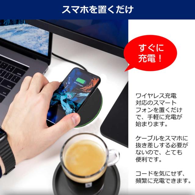 ●ワイヤレス充電対応のスマートフォンを置くだけで、手軽に充電が始まります。