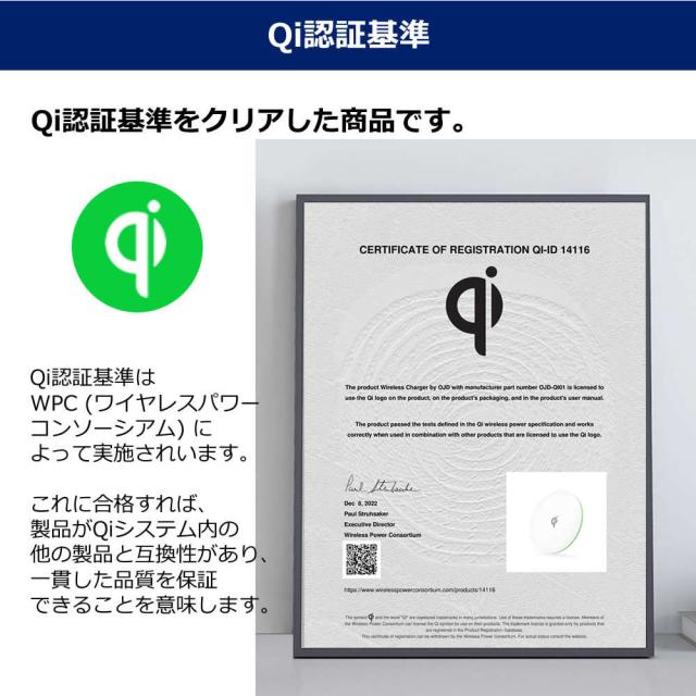ワイヤレス 充電器 Qi 認証 薄型 置くだけ充電 と 液晶保護フィルム セット