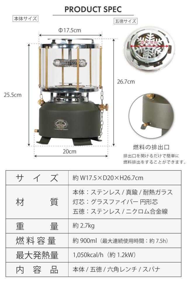 小さなボディながら最大7.5時間の燃焼時間を誇り、テントの中や屋外でもしっかり暖が取れる本格ストーブです。