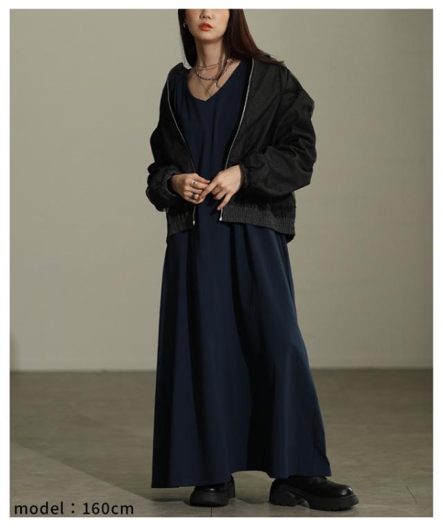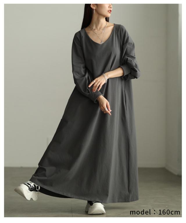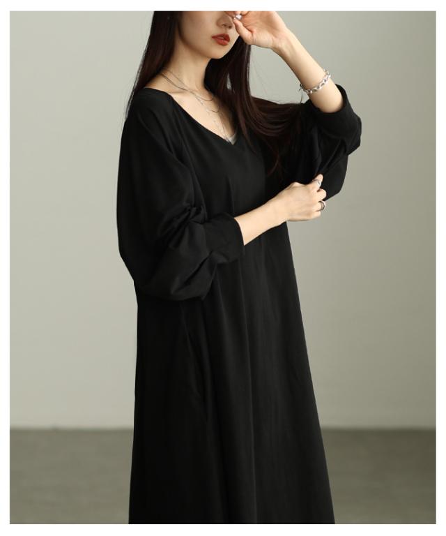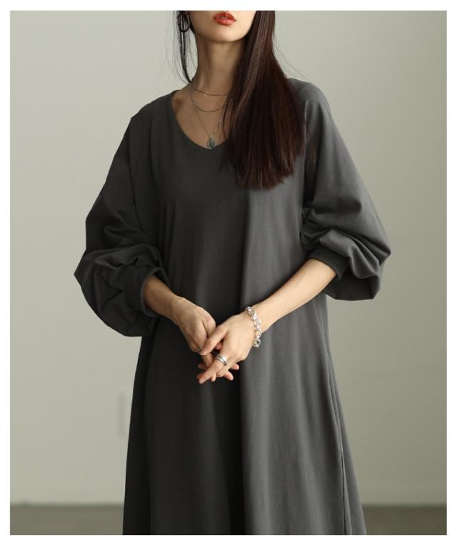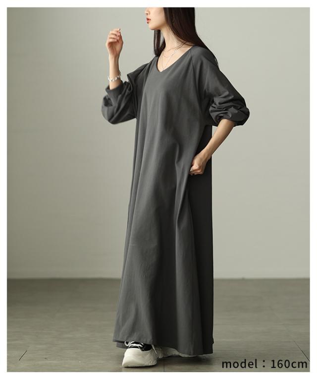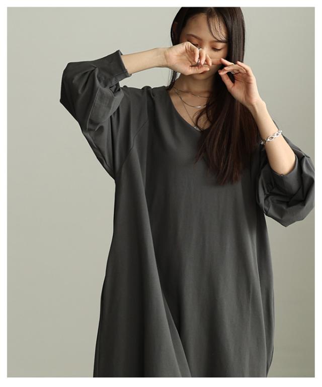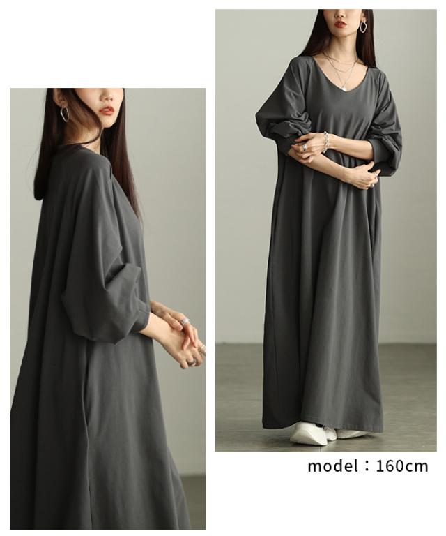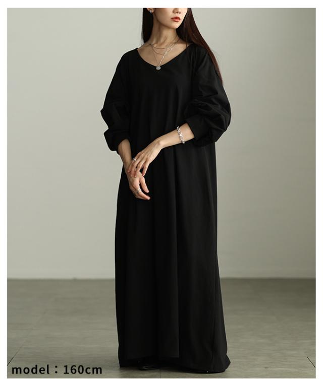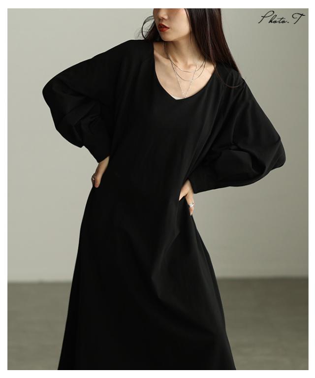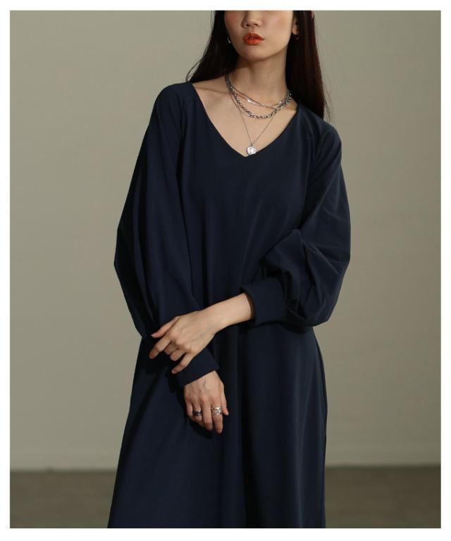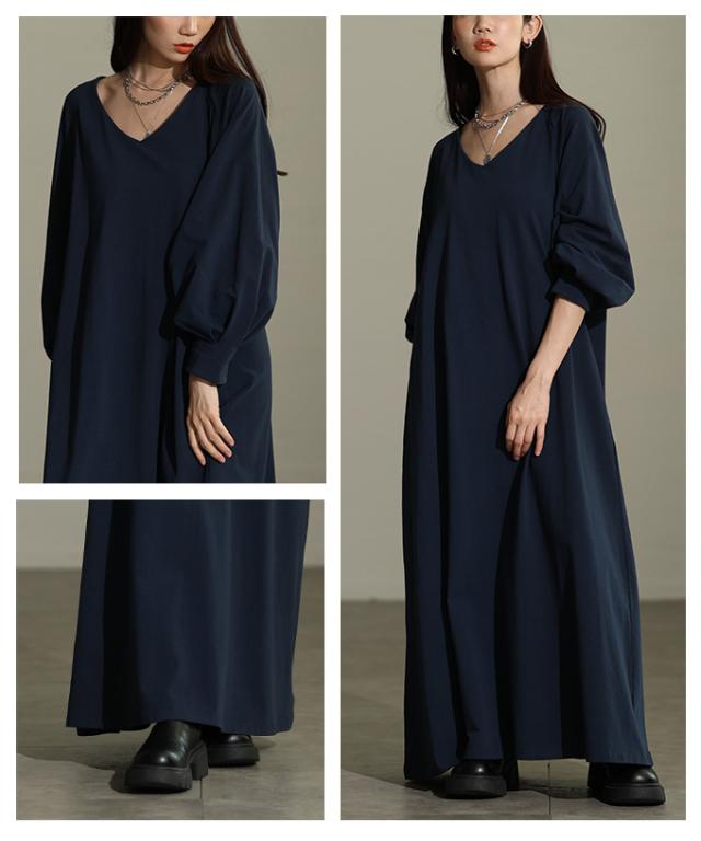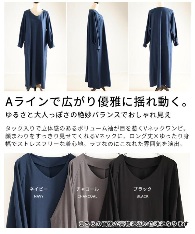 冬新作 一枚で大人可愛いVネックボリューム袖ワンピース レディース ファッション ワンピース ブラック 黒 チャコール ネイビー 冬服 大人可愛い 20代 30代 40代 レディースファッション カジュアル 体型カバー おしゃれ きれいめ ママ アラモード alamode alnw-26001