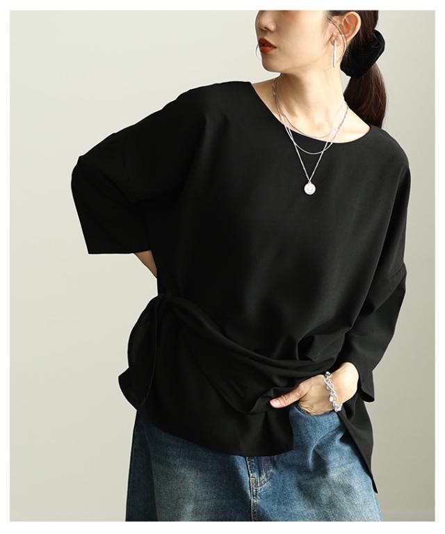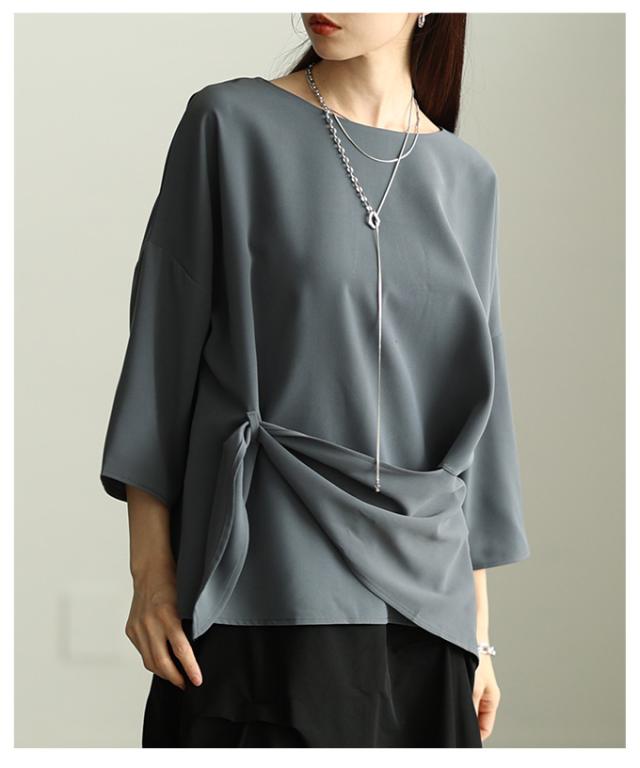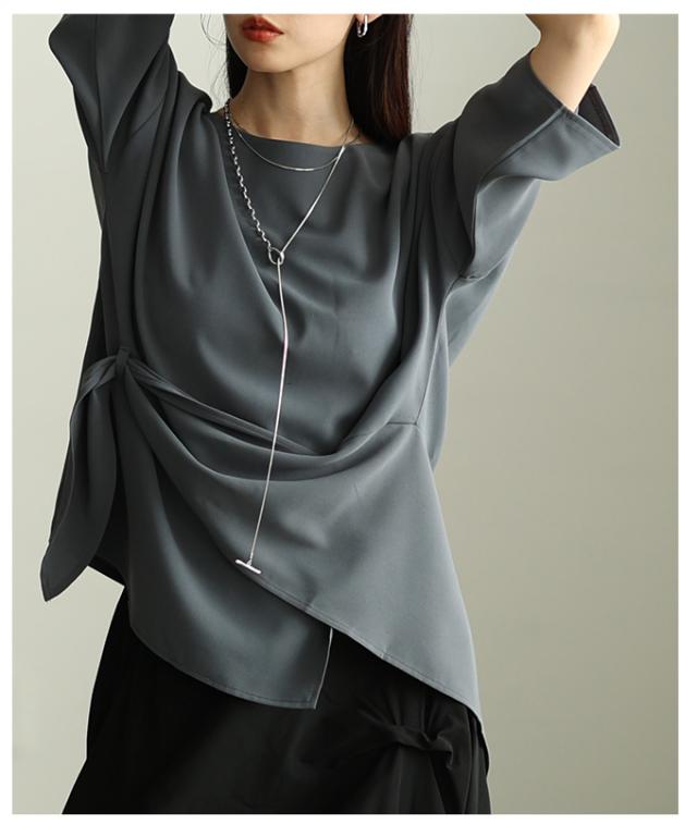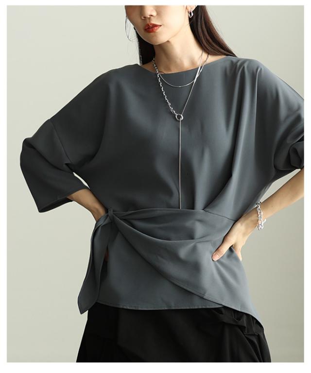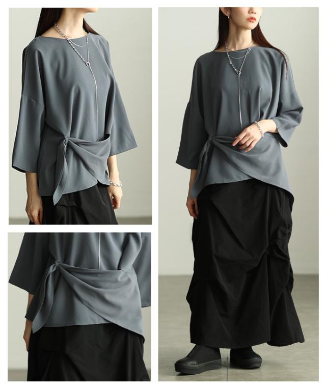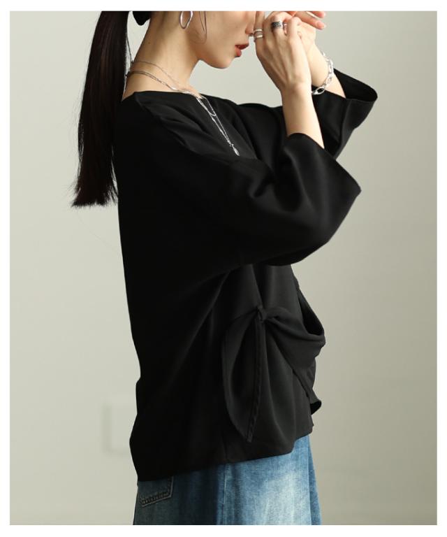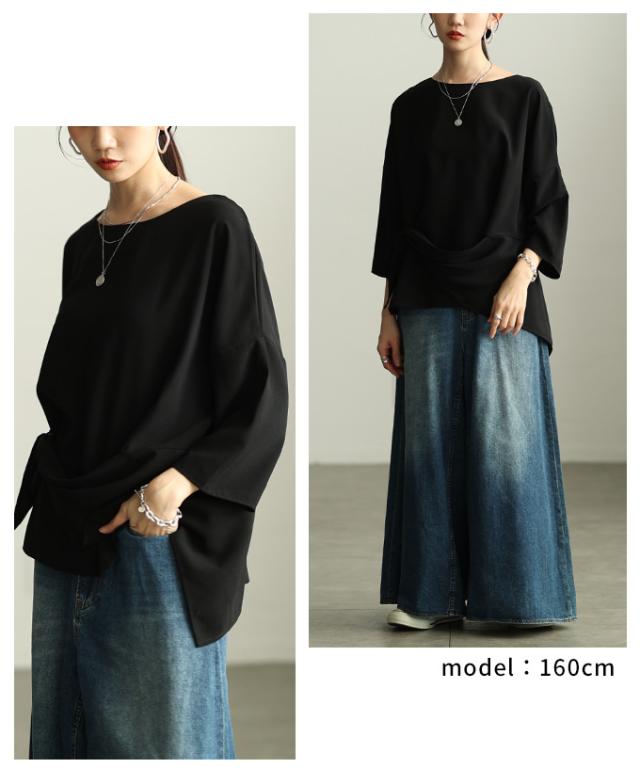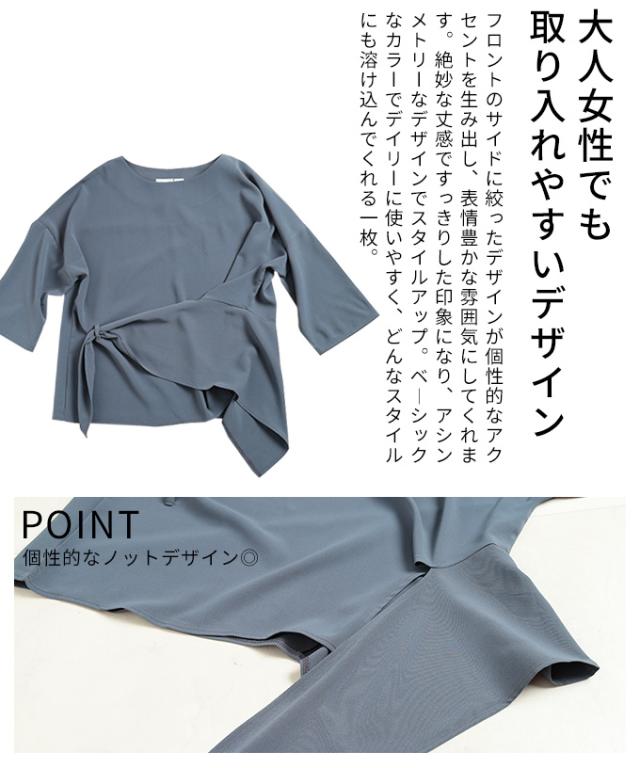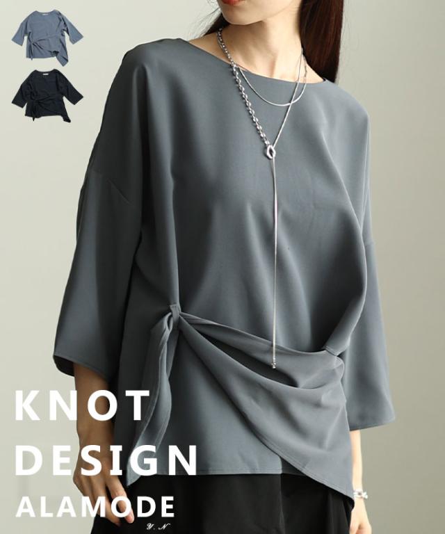 冬新作 おしゃれに差がつくノットデザインアシンメトリートップス レディース ファッション トップス カットソー プルオーバー 冬服 大人可愛い 20代 30代 40代 レディースファッション カジュアル 体型カバー おしゃれ きれいめ ママ アラモード alamode aljun-1012s