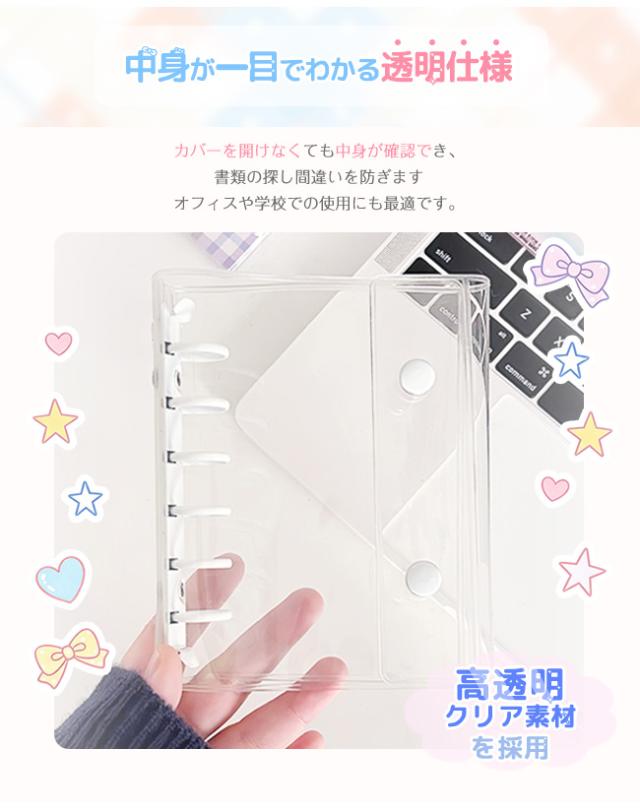 ・SNSで話題の透明クリアバインダー、中身が一目でわかる高透明カバー。