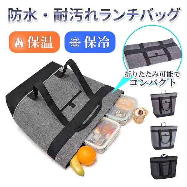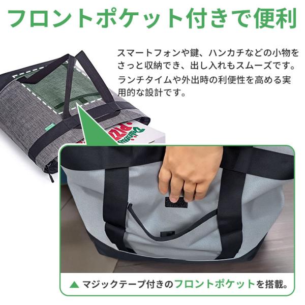 アルミ箔保温・保冷ランチバッグ 折りたたみ可能・防水・耐汚れ 手提げタイプ・前ポケット付き ピクニック・お弁当収納 宅配便配送