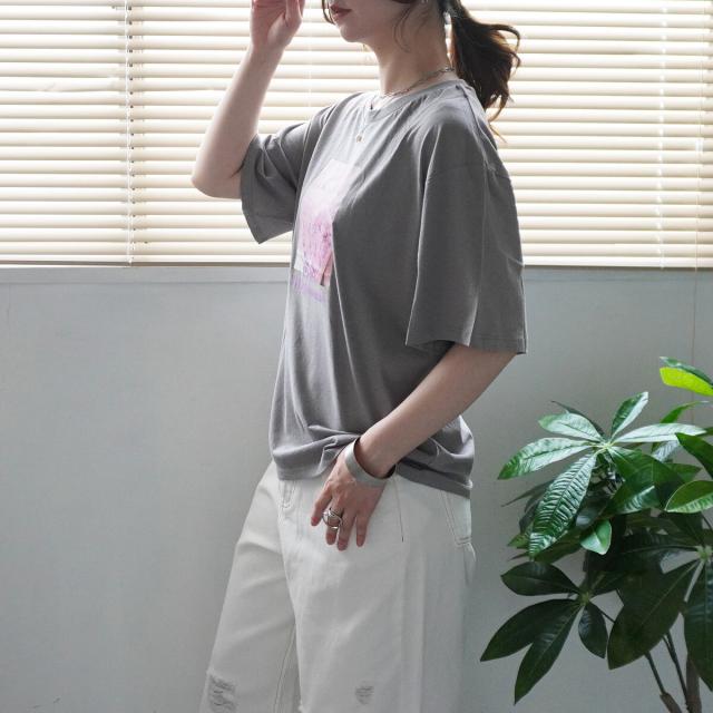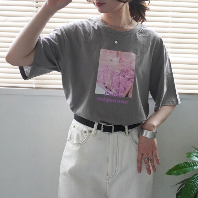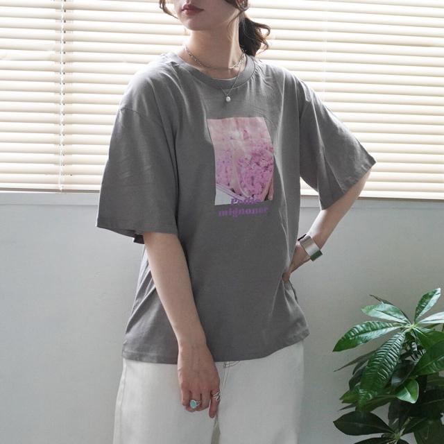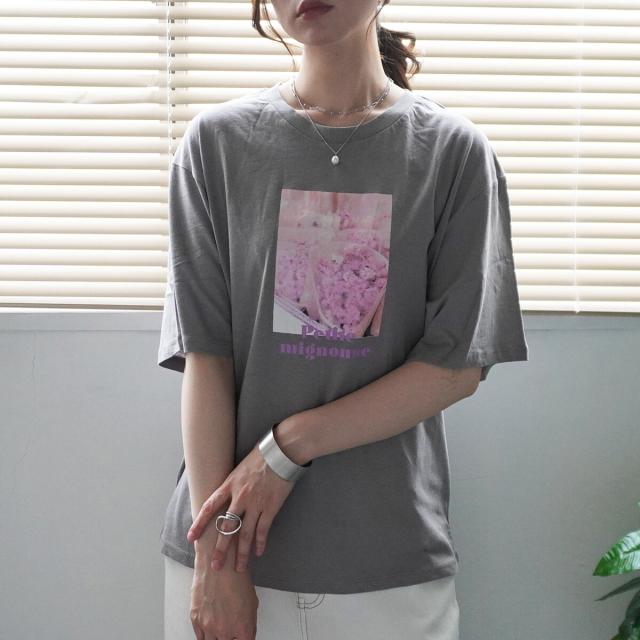【即納】フラワーフォトプリントTシャツ 転写プリント 綿100% 半袖 トップス シャツ 春夏 春新作