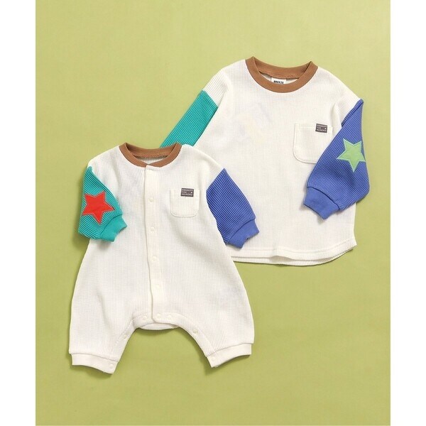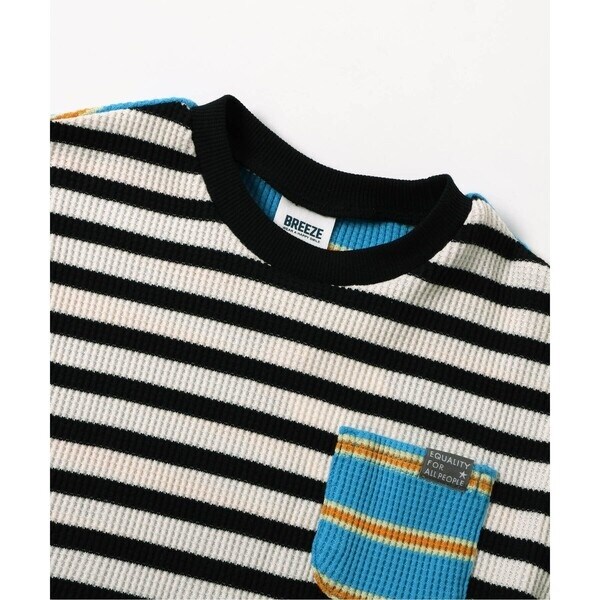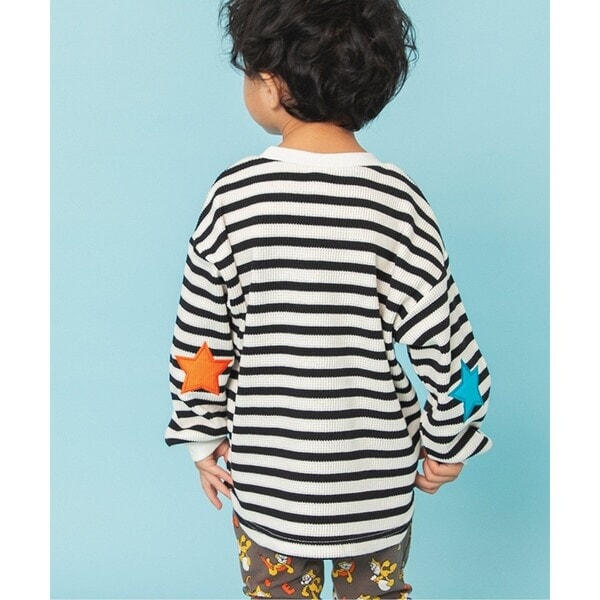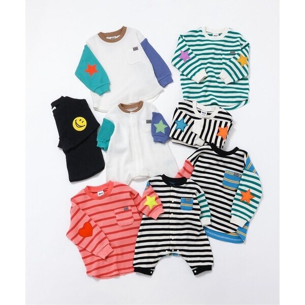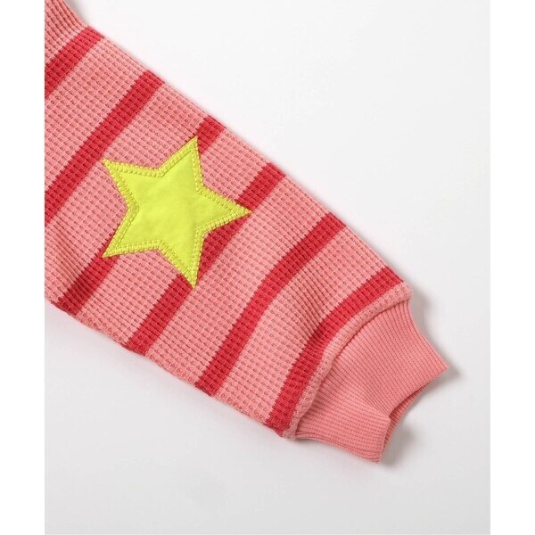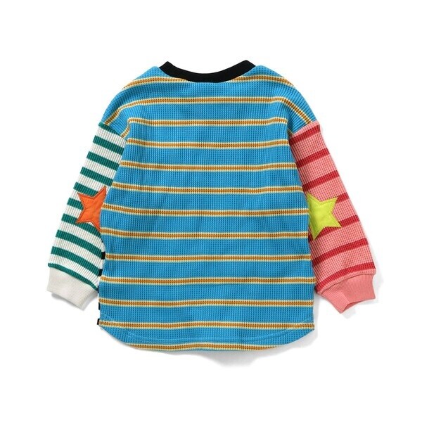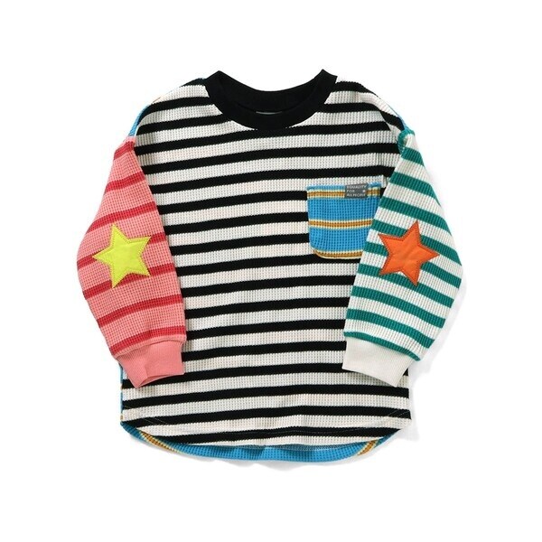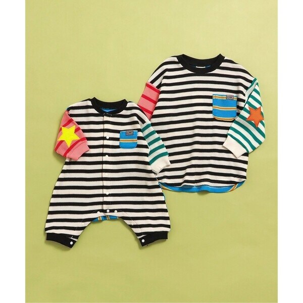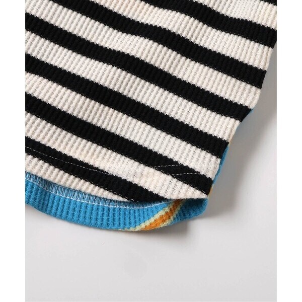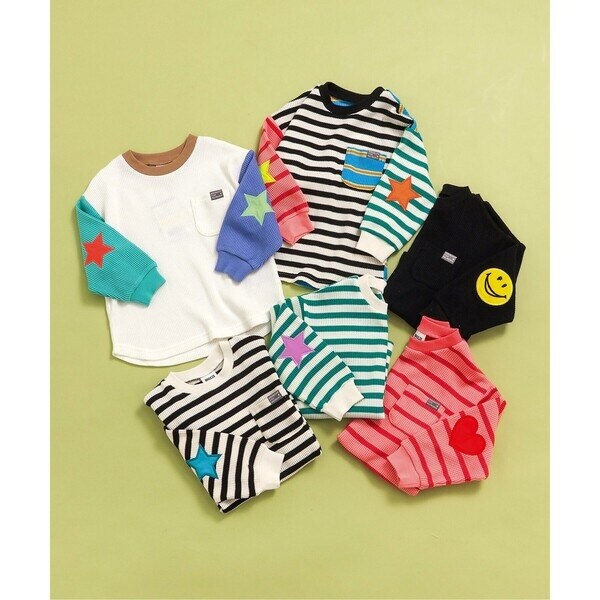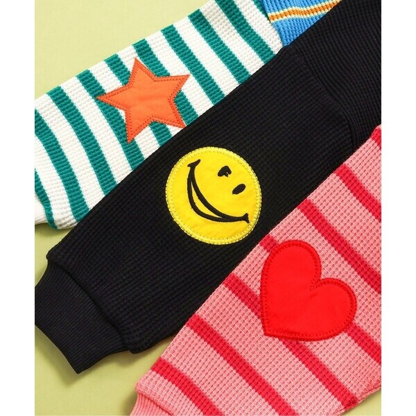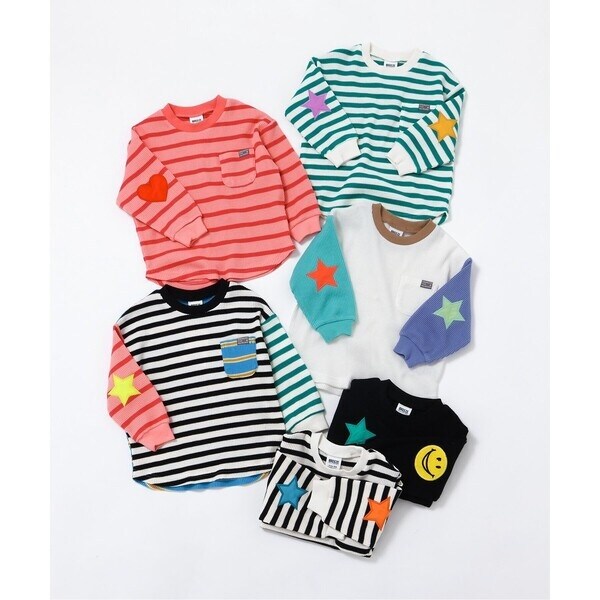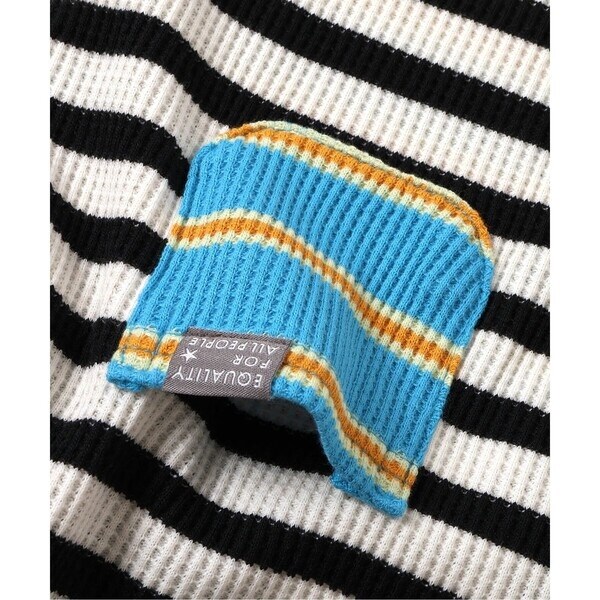 ■素材:ボーダー柄/マルチカラー2/マルチカラー1/エメラルドグリーン/ピンク/ブラック:ワッフル/先染めボーダーワッフル、本体:綿60% ポリエステル40%、リブ:綿58% ポリエステル38% ポリウレタン4%、ワッペン:ポリエステル100%