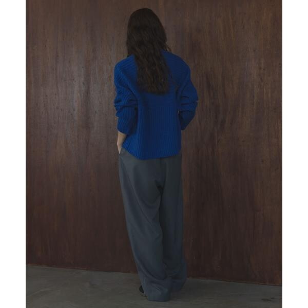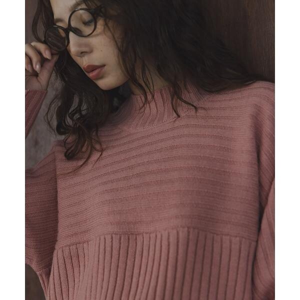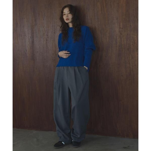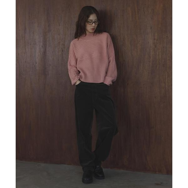 太めのリブを横方向と縦方向に切り替えることで、ウエストまわりが自然とすっきり見えるデザインに。