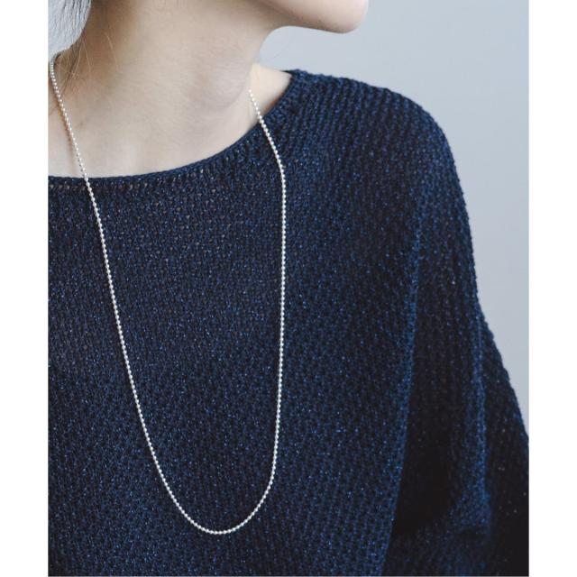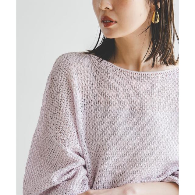 ぺーパーヤーンを使用したシャリ感のある独特な風合いに、表面感のある編地が清涼感漂うニットプルオーバー。