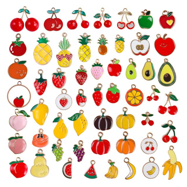 カラーチャーム 金属チャーム フルーツ 野菜 100個入り ハンドメイド アクセサリーパーツ