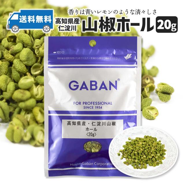 高知県産・仁淀川山椒ホール20g ギャバン GYABAN 山椒 さんしょう 山椒 国産 青山椒 山椒 ミル 詰替え 詰め替え 香辛料 スパイス うなぎ メール便 送料無料