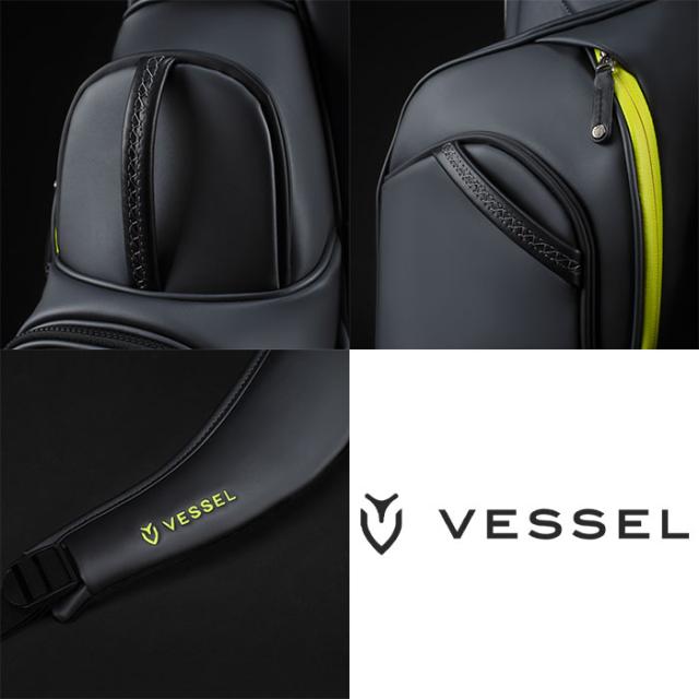最大サイズとなる9.5インチのVESSEL史上最上級グレードスタンドバッグ 機能や仕様の細部にまで徹底的にこだわったフラッグシップモデル、新設計の7分割構造により最適なクラブ整理と取り出しやすさを実現