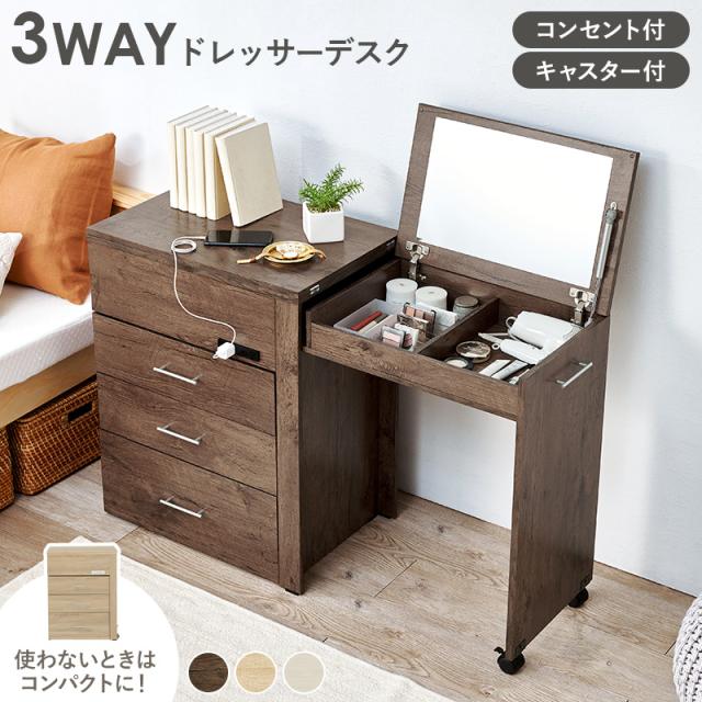 デスク・チェスト・ドレッサーの3役を兼ね備えた、機能的なドレッサーデスク。