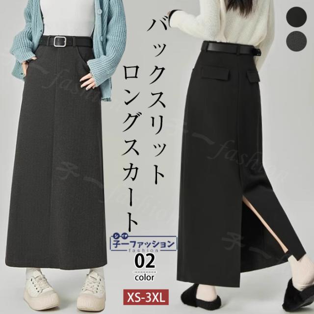 <1点2,690円!クーポン利用で> スカート ロング丈 レディース 春 秋冬 タイトスカート ロングスカート バックスリット スリット入り ポケット付き きれいめ aライン ハイウエスト ウエストゴム 高見え 抜け感 スリット