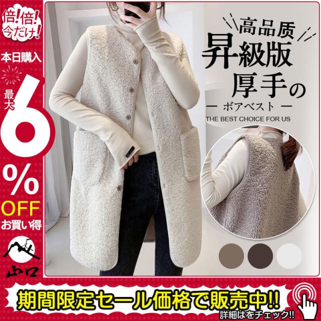 昇級版!厚手ボアベスト レディース ジャケット アウター チョッキ ロング フリースベスト ジレ 前開き もこもこ ゆったり 着痩せ 暖かい 防寒 防風 通学 通勤