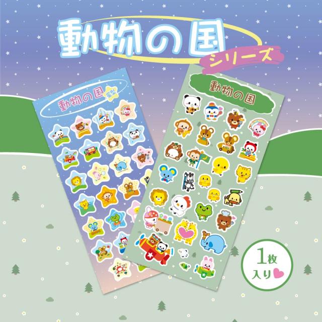 動物の国シール 1枚入り 耐水 防水 ステッカー アニマル かわいい デコ シール スマホ 文房具 シール手帳 キャラクター シール